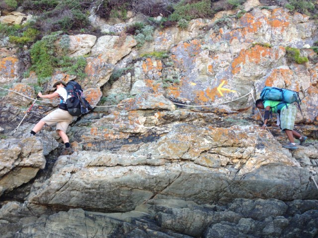 This is a tough day, its the middle of the hike and your legs are still aching from the descent on Day 1. I found this day the most difficult to navigate and there are long sections that hug the coast with tricky rock fields and narrow trails. It does open up in sections, however, like the river crossing at Elandsbosrivier.