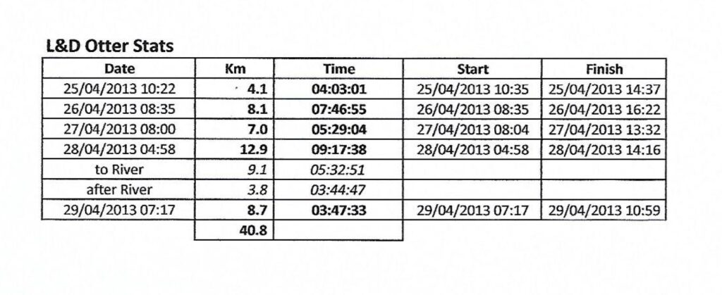 Distances are indicated per kilometre for each day on the Otter Trail Map that is available on sale in the park.