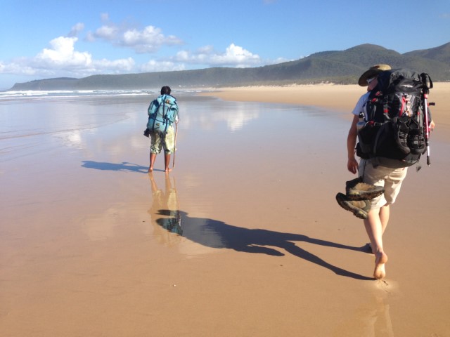 The second day was a slightly longer day through indigenous forests and rocky terrain. There is an option on the trail to walk down to a small bay, nicknamed Blue Bay by the old-guard hiking community. We had learned the name on our first hike in 2013 from an older couple, Andre and Margie. They had hiked the trail over 30 times at that stage, and were still going strong!